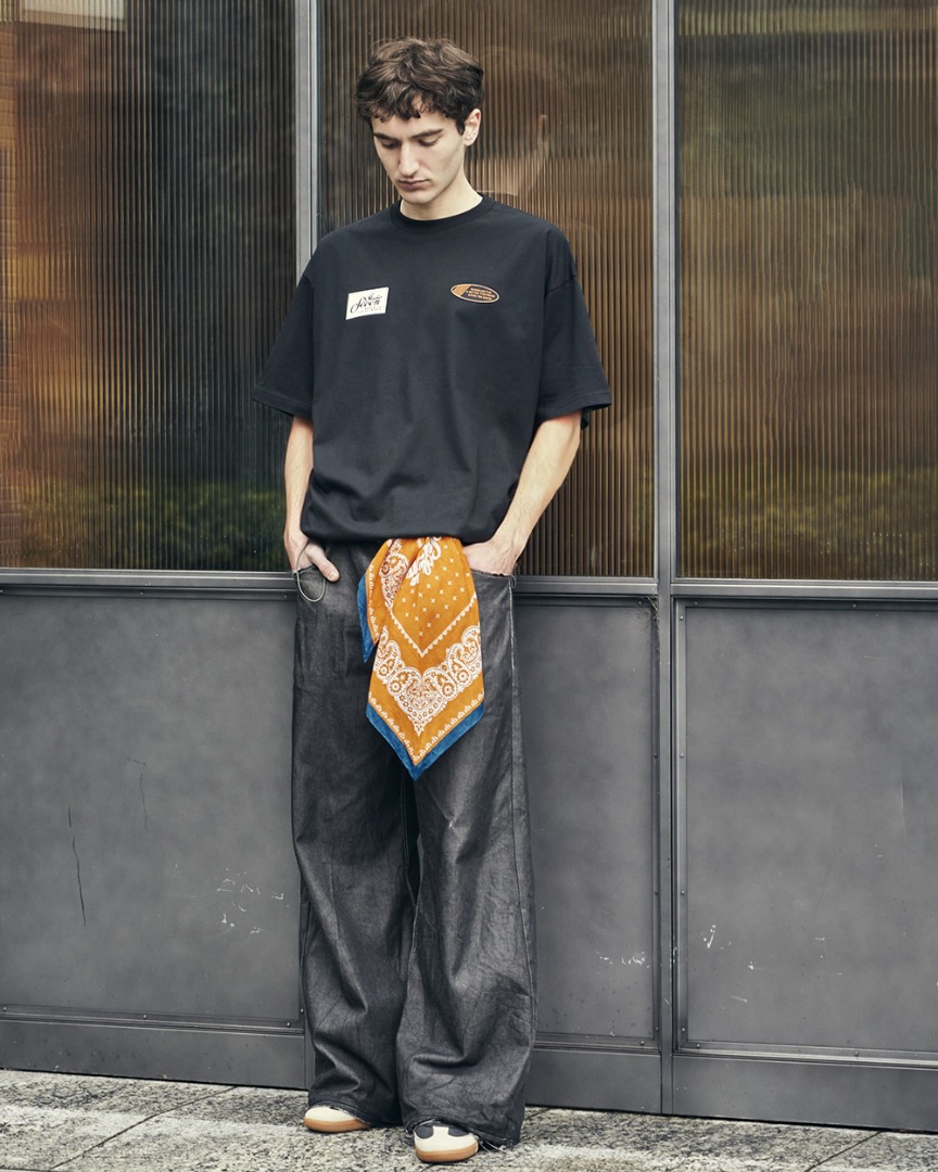 今回のコレクションでは、オリジナルパッチをあしらったTシャツ2型に加え、同モチーフのトートバッグ、ヴィンテージライクな柄と色合いのバンダナをラインナップ。